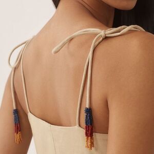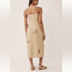 FARM Rio x Anthropologie Tan Embroidered Linen Blend Midi Dress