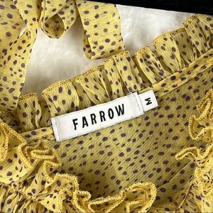 FARROW Sheer Yellow and Purple dot Ruffle Blouse, Size Medium