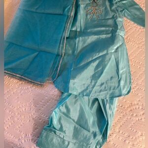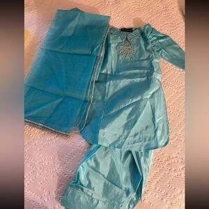 FARSHI SHALWAR KAMEEZ SILK BOW DETAIL RHINESTONE PAKISTANI DRESS 3 PIECE ROMI APPAREL