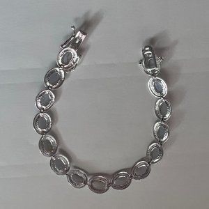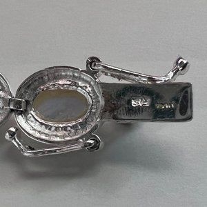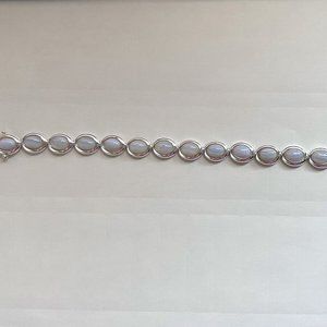 FAS 925 Silver White Agate Stone Cabochon Bracelet
