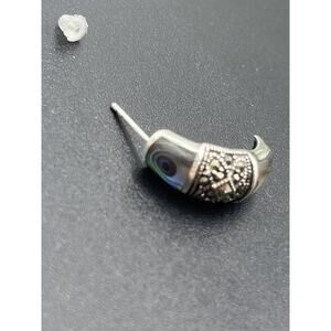 DESIGNER FAS Abalone & Marcasite 925 J-Hoop Post Pierced Earrings 5.30g