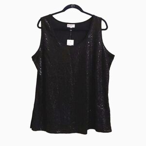 FASHION BUG Black Sequinned Round Neck Sleeveless Tank Top in excellent condition