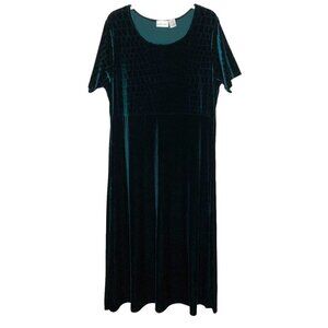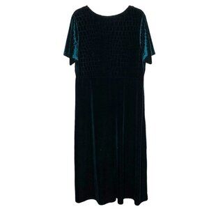 FASHION BUG - Deep Emerald Green Velvet Feel Scoop Neck Short Sleeve Empire Waist Maxi Dress with Reptile Texture on the Bodice - Size 14/16W. No visible flaws. Excellent Pre-owned condition! LIKE NEW!