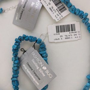 FASHION BUG Lot (2) Turquoise Chip Sterling Silver Necklace & Stretch Bracelet