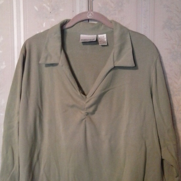 FASHION BUG WOMEN'S LIGHT GREEN V-NECK COLLAR TOP