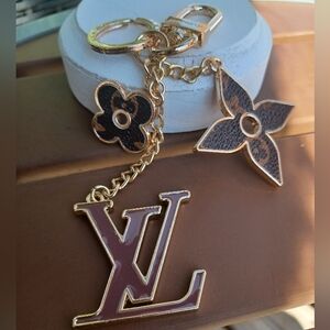 Chic FASHION bag charm.. Features floral designs in black and gold. Adds luxury to your essentials.