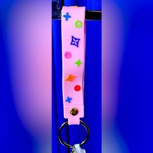 This Custom NWOT FASHION Brown and Pink Keychain w/Wristlet is in GREAT CONDITION, no snags; no holes; no fading areas; NEVER worn. But still previously lovingly cared for; so it’s a preloved (used) item, some normal and minimal wear is expected. Depending on device used, color may vary. Review pics as they’re part of the description. Sold as is, no refunds. All auction bids/wins are final, no cancellations.