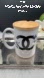 Stylish white mug with iconic black CC logo. Features delicate floral accents. Includes a tan lid.