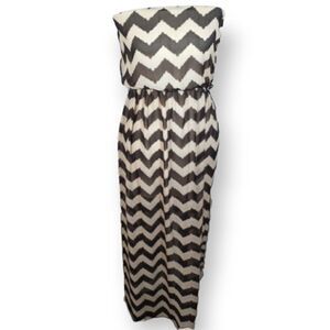 FASHION MAGAZINE BLACK & TAN STRIPE STRAPLESS MAXI DRESS SZ.M EUC.