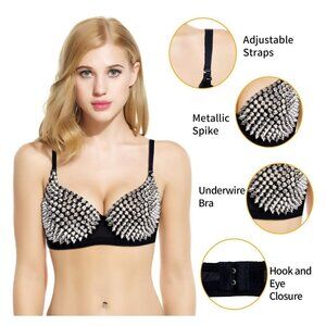 - Steampunk rock style bra top embellished with metallic spike all around the bust