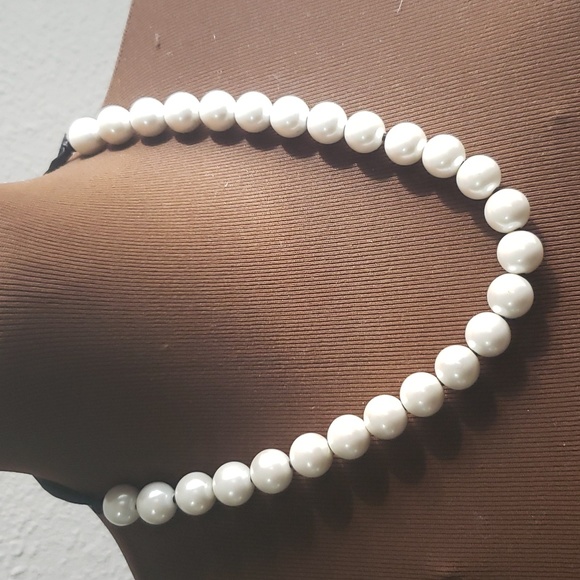 Pearl Fashion Necklace w/Black Ribbon Tie 🎀 (12" displayed, 20" untied)
