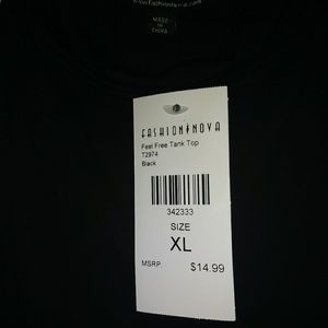 Black sleeveless top. NWT from Fashion Nova. Size XL but fits more like a Medium. I'm a DD cup size and they were spilling out of the shirt.