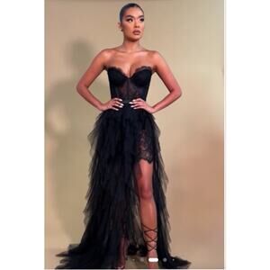FASHION NOVA Anastasia Tiered Tulle Corset Strapless Gown Maxi Dress Prom Vamp S