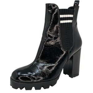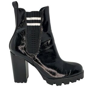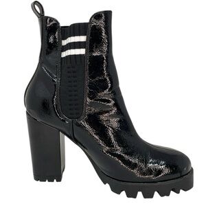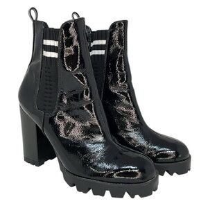 FASHION NOVA Ankle Boots Black Patent Booties Platform Lug Sole Heels Size 8