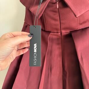 FASHION NOVA | Definitely Darling Burgundy Satin Corset Cocktail Dress | Medium
