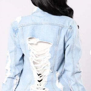 FASHION NOVA Distressed Light Blue Denim Jacket size XS oversized pre-loved