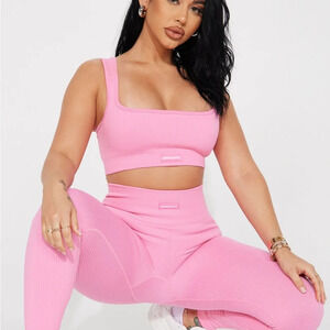 FASHION NOVA Effortless Orpheus Ribbed Seamless Bra Top in Bubblegum
