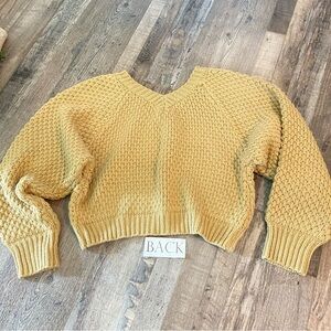 Golden Cropped Oversized V-Neck Knit Sweater Size Small