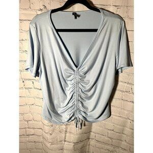 FASHION NOVA LADIES LIGHT BLUE SHORT SLEEVE SHIRT WITH MIDDLE CINCHING (2X) EUC