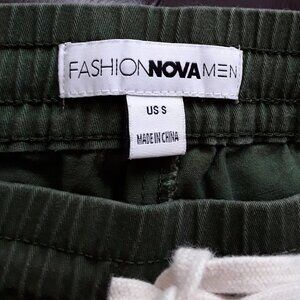 FASHION NOVA MEN Army Green & White Ankle Zip Slim Fit Drawtring Track Pants