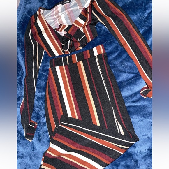 Like new condition… size small… Brown striped top with matching midi skirt…