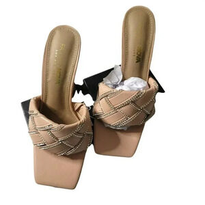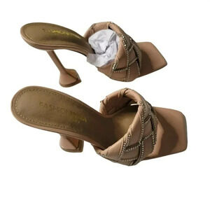 FASHION NOVA SIZE 7 SQUARE TOE Braided Slide Dress Sandals EMBELLISHMENTS BEIGE.