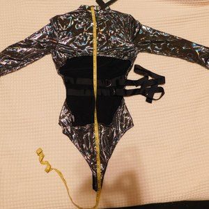 A new with tags 'Have you in a Trance' iridescent bodysuit by Fashion Nova, sized XS. See photos for very garment you will receive. Ships from a non smoking home. Please refer to photos for measurements.