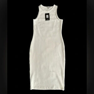 FASHION NOVA Women Ribbed Tank Sleeveless Maxi White Medium Dress BNWT