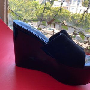 Very cool mules wedge platforms from FASHION NOVA patent man-made marked 11. No scuffs or fading stains.