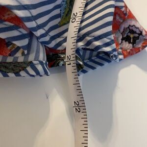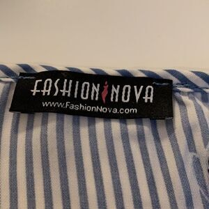 FASHION Nova blue white long sleeve cross top silky blouse ties at waist large