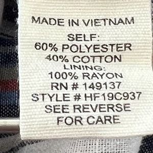 • Self: 60% Polyester, 40% Cotton Lining: 100% Polyester