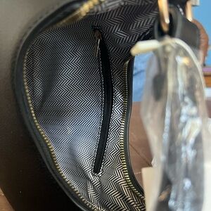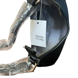 Brand new still in package. 10 inch wide by 8 inch high 14 inch strap with 2 zipper pockets inside. Feels like real leather. Bought for my niece but she didn’t like black