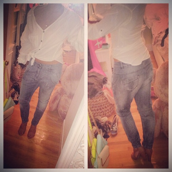 🔹FASHION TIP🔹 Take a pair of your boys jeans (or get a cute pair from posh) and match them with a huge top ~ tie a knot in the back to make it flirty and fun~ || a crop top || a peplum || and a pair of your sexiest heels ! create that chic sexy look even with some baggy jeans 😌💃💕