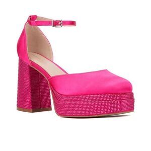 FASHION TO FIGURE MARTINE 2 GEMMED WIDE WIDTH PLATFORM PUMPS Hot Pink Size 7 New