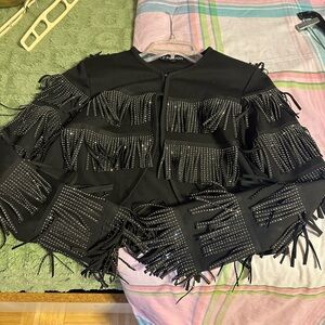 Black shaggy with bling on this top. Long sleeves short top to style your strapless dress or blouse. This top will enhance your style for a formal or a casual party. Brand new in a small size top.