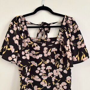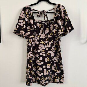 FASHION UNION BLACK PINK FLORAL SHORT SLEEVE TIE BACK DRESS - XS