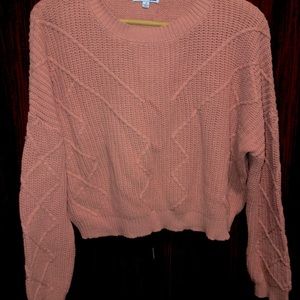 This cute baby pink sweater is a must have essential in your fall/winter closet. Brand new. Stretchy. No makeup stains. Can show proof of purchase with original receipt.