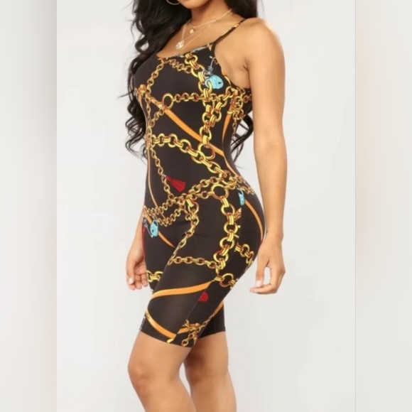 Really cute and fashionable 1 piece romper with chain effect pattern.