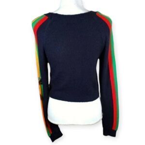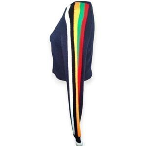 FASHION NOVA NAVY W/RAINBOW SLEEVES CROP SWEATER SZ.M EUC.