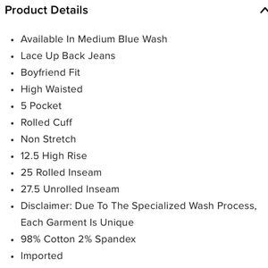 FASHION NOVA TIE EM UP BOYFRIEND JEANS MEDIUM WASH NWT SZ 14