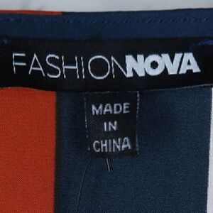FASHION NOVA BLUE ORANGE & WHITE LONG SLEEVE MOCK WRAP SCARF MIDI DRESS SIZE XS