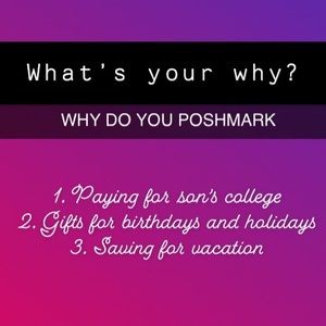 π₯π Same or Next Day Shipping! Always! Check out my ratings! π₯π Whatβs your why? Why do you Posh?? π₯π I am paying for my first child to go to college! Poshing helps me buy gifts for birthdays and holidays! And also I am saving up for vacation! π₯π Happy poshing, my friend! π₯π