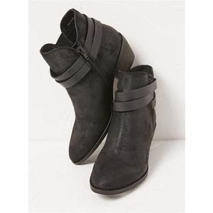 FAT FACE genuine leather "EMMA" strappy ankle boots in charcoal black.