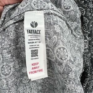 FAT FACE Lola Linear Batik 100% Linen Print Midi Dress Black UK 18 US 14 NEW