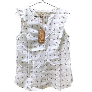 FAT FACE MOLLIE White Jacquard Frill Sleeveless Ruffle Blouse Sz 4 NWT