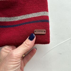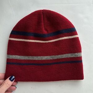 FAT FACE Men’s OS Red Spaced Stripe Fitted Stretch Knitted Beanie Hat Wool
