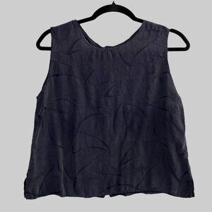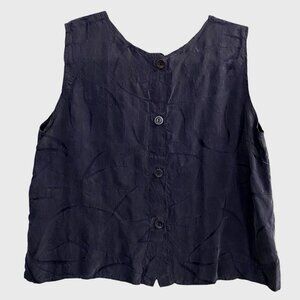 FAT HAT Women Boxy Top Sz M Dark Blue Crop Button Back Sleeveless Casual 47-30