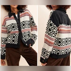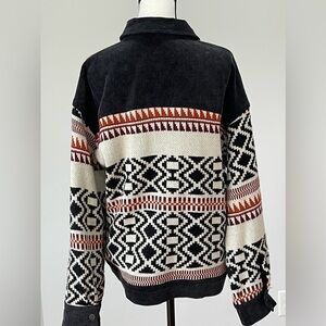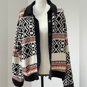 FATE Anthropologie Geometric knit and corduroy jacket size Medium cozy outerwear