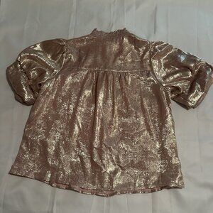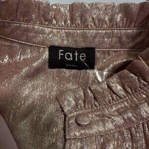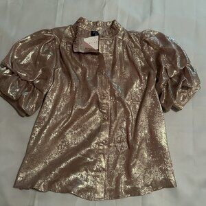 FATE Button Up Shirt Shiny Puffy Sleeves Pink/Gold New With Tags Size Small