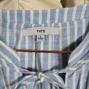 FATE Linen Blend Striped Dress Large Smocked Button Front Long Sleeves